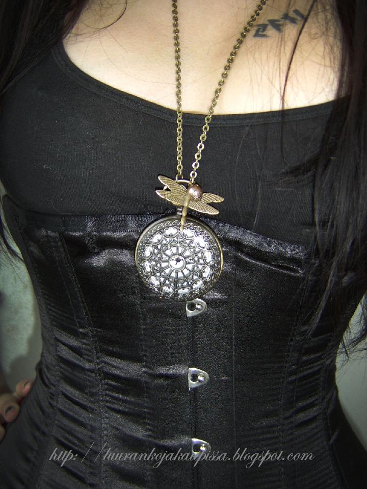 Eli ensin esittelyssä myöhästynyt synttärilahja (kyllä, vielä yksi!) Janilta. Se on tilattu Sannalta . Kyllä tulee tilattua pian varmaan lisääkin koruja ja vaatteita tulee Steam punk tyyliin (tietenkin!) myöhemmin, varmaan kevääksi onkin sitten hienot vaatteet ;) Odottakaapas vain.